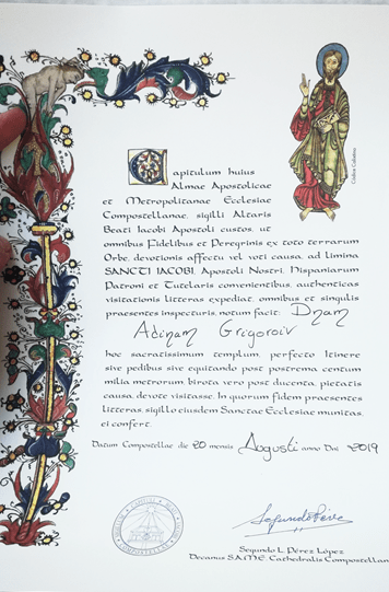 There were a few reasons why I decided to treat this adventure like a project. First of all, it required a considerable amount of sustained effort for a month: 20-25 km per day, while carrying a backpack that should weigh no more than 10% of your body weight (which is still quite heavy, especially after 10 km). Secondly, a journey like this entails a high level of uncertainty and risk: you can get injured because of the effort, you might be robbed, it can also get too overwhelming physically or emotionally to complete. And lastly, while I was doing the initial research about the Camino I discovered that it has also a tangible result. It is a certificate that all pilgrims that have walked at least 100 km can receive when they reach Santiago de Compostela. In order to demonstrate their effort, pilgrims carry with themselves a credential where stamps from the road are collected with their corresponding dates.